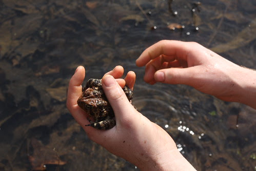 really cool toad (fowlers i think?) he was sitting on a log as we were admiring his size and wishin' he'd come closer to us so we could catch him when he did just that! he swam almost directly into perry's hands.
